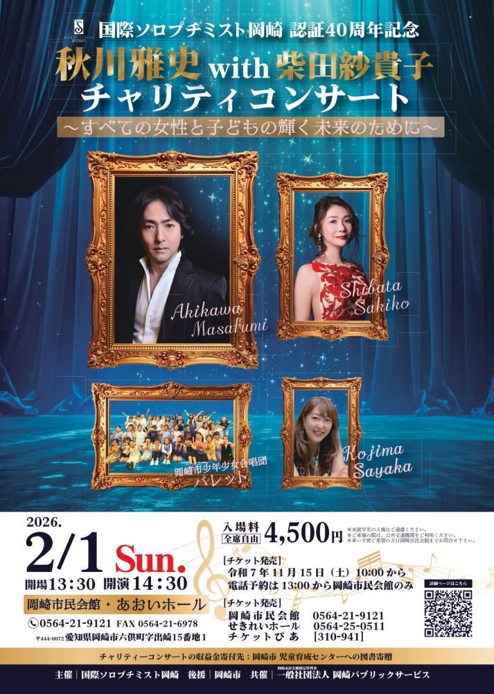 【イベント】2/1『国際ソロプチミスト岡崎 認証40周年記念 秋川雅史&柴田紗貴子チャリティコンサー』