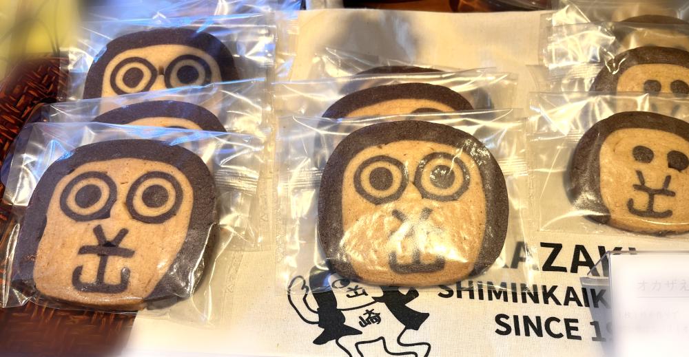 岡崎市の大人気ゆるキャラマスコット「オカザえもん」「オカザえもんジュニア」のクッキーも人気商品のひとつ。