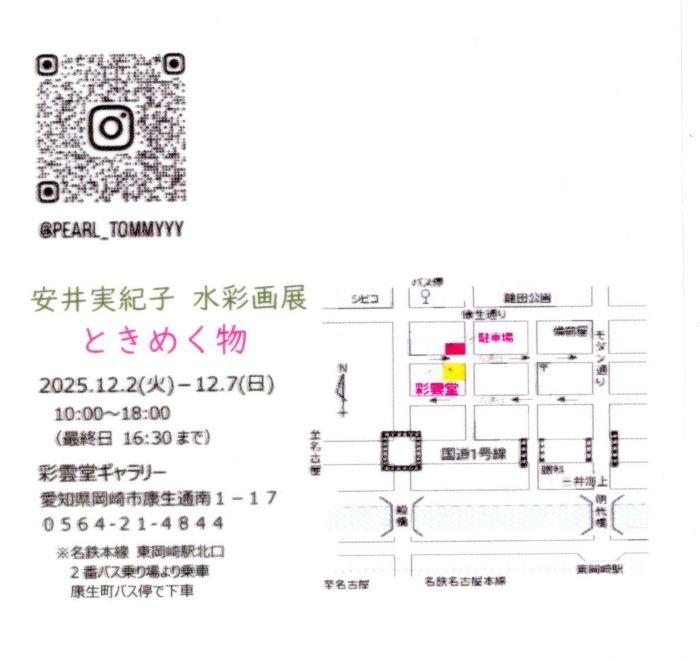 【康生のアート情報】安井実紀子 水彩画展:12/2~12/7(岡崎/ギャラリー/画材)